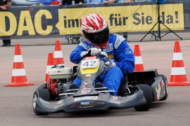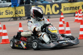 Der Parcours war diesmal noch größer angelegt als sonst beim ADAC Bundesfinale üblich, und er war wie immer sehr schnell zu fahren. Auch war die Leistungsdichte unter den angetretenen Fahrern wie immer sehr hoch, so dass die Fahrzeiten sehr dicht beieinander lagen. Etwas nachteilig war es für die größeren Fahrer, dass das Veranstaltungsgelände leicht geneigt war, so dass es dem Kart an einigen Stellen etwas an Beschleunigung fehlte. Insofern sind der 12. Platz von Daniel und der 18. Platz von Nils, die beide jeweils fehlerfreie Wertungsläufe absolvierten, ein erfreuliches Ergebnis bei dieser Veranstaltung, bei der allein die Teilnahme schon eine besondere Leistung darstellt.